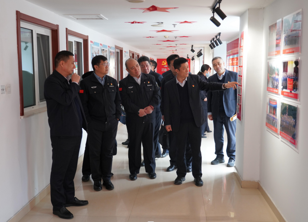 在濰坊昌威保安服務集團有限公司,黨委書記、董事長付志欣一行實地參觀了指揮調度中心、槍彈庫、各押運大隊、黨建文化長廊等場所。